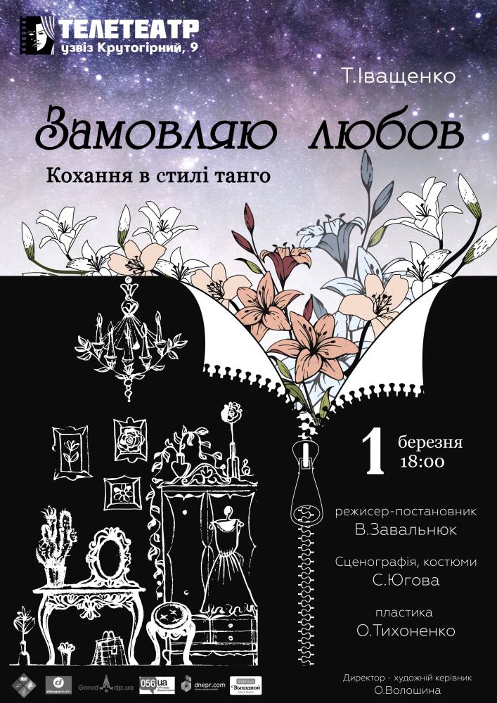 2020 – “Замовляю” любов”. 13-а вистава за п’єсою Тетяни Іващенко. Вистава Телетеатру пропонує глядачам зануритися у “кохання в стилі танго”, так режисер-постановник Володимир Завальнюк визначив жанр цієї лірико-драматичної історії.