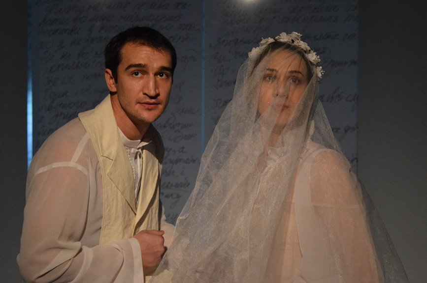 Відчуття трагедії подружніх стосунків Ольги і Франка режисер підкреслює моментами відсутності фізичного контакту чоловіка і жінки. Підсвідомо Франко-Собержанський уникає обіймів дружини, замість поцілунку – потискання руки, траєкторії їхніх сценічних шляхів ніби свідомо не перетинаються, існують якось паралельно, без дотиків, таке наявне небуття кохання… Ольга-Капралова хоче обійняти чоловіка, та може пригорнутися лише до паперів з його написаними віршами. Відчай бринить від неможливості поєднання двох таких достойних світів, постає образ величезної людської трагедії, мук творця, що не здатен дати любов, а живе лише своїм найвищим призначенням. Сергію Собержанському вдається переконливо зіграти одержимість поета, передати міру його людських страждань, невимовний біль від нездійсненності бажань, чоловічих і мистецьких. Такої ж високої міри трагізм долі своєї героїні демонструє й Галина Капралова. Актриса акцентує на суто біографічних рисах Хоружинської та водночас робить цей образ поза часом. Вона виводить певне узагальнення образу жінки, яка жертовно кладе власне життя на вівтар геніального чоловіка та все ж не здатна змиритися з відсутністю кохання.