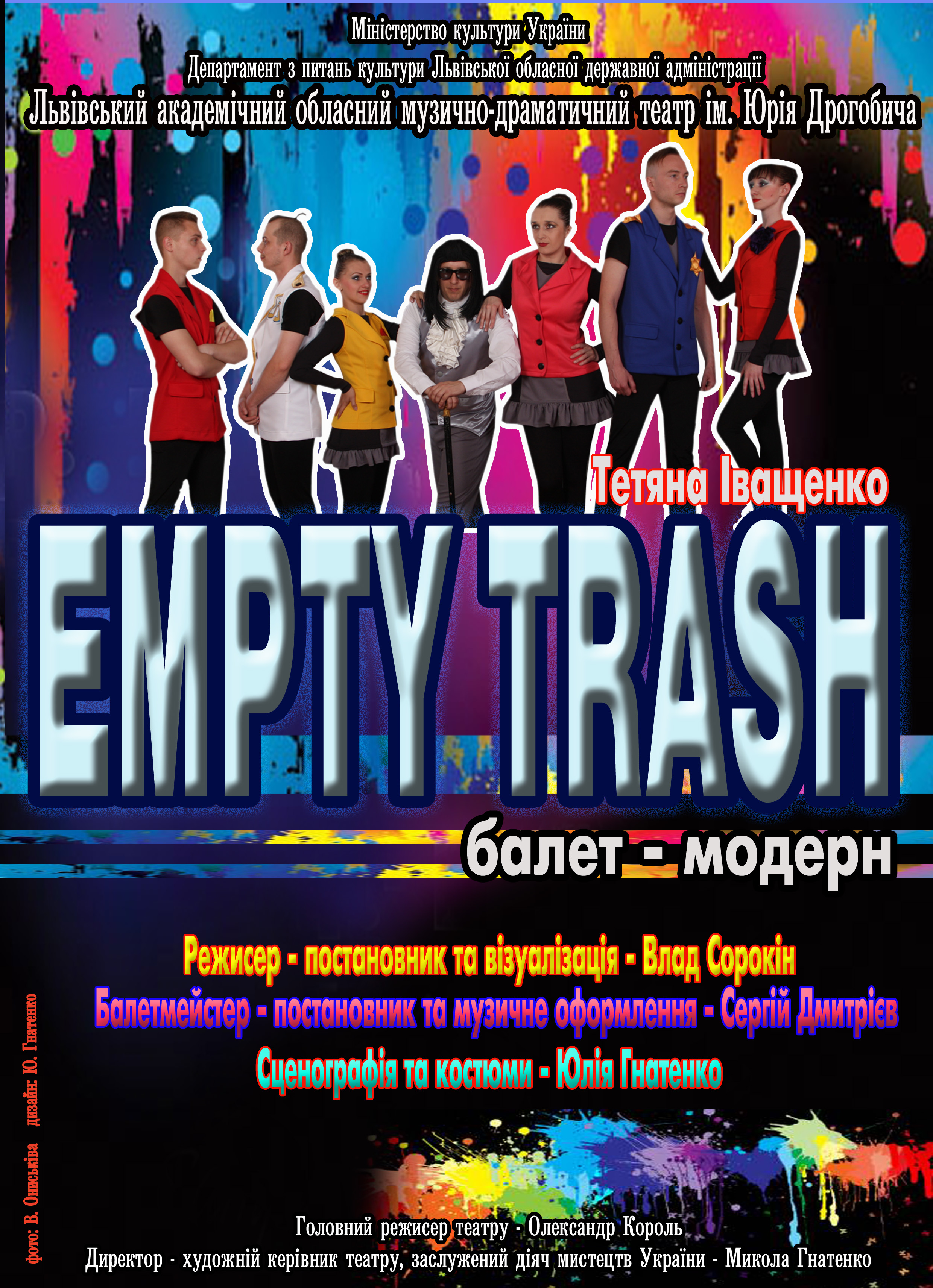 Прем’єра модерн-балету «EMPTY TRASH»  у Львівському академічному обласному музично-драматичному театрі ім. Юрія Дрогобича (м. Дрогобич) відбулась  26 листопада 2017 року.